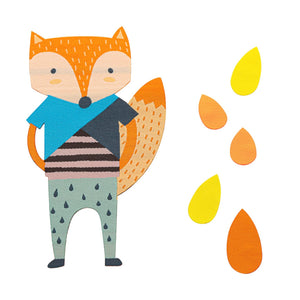 Größen: Fox 60 mm b x 113 mm h, Drop orange 15 mm b x 29 mm h, Drops yellow 12 mm b x 24 mm h, Drops neon orange 11 mm b x 17 mm h